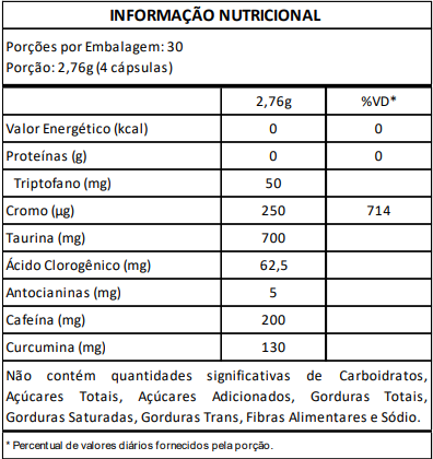 A fórmula do Thermobody é enriquecida com nutrientes como triptofano, cromo, taurina, cafeína e curcumina, oferecendo suporte completo para energia, disposição e equilíbrio do metabolismo.